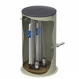 Корпус станции выполнен из полиэтилена или из стеклопластика . В комплект поставки входят насосы, шкаф управления, арматура, напорные трубопроводы, реле уровня, подъемные цепи, вентиляционный трубопровод, манжеты для подводящего трубопровода. Входной патрубок может быть врезан в резервуар на любом уровне, допустимом для нормальной работы станции. На выбор имеется большое количество типоразмеров станций для разных типов насосов, для одного или для двух насосов. Под заказ изготавливаются станции в нестандартной конфигурации. КНС с корпусом из стеклопластика в нестандартной конфигурации могут поставляться высотой до 12000 м.