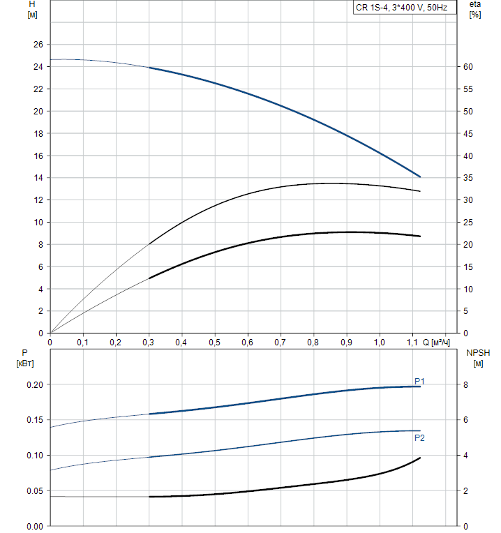 Энергия (Р2), необходимая для насоса: 0.37 кВт