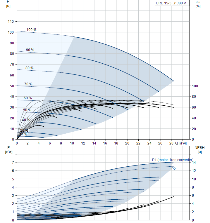 Энергия (Р2), необходимая для насоса: 7.5 кВт
