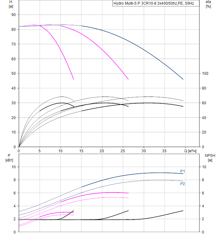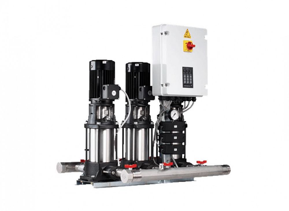 Установка Hydro Multi-S состоит из 3 одинаковых насосов CR10-8, соединённых параллельно и смонтированных на общей раме-основании, со шкафом управления (с блоком управления) и всей необходимой арматурой. Установка повышения давления оснащена двухпозиционным переключателем напряжения питания.