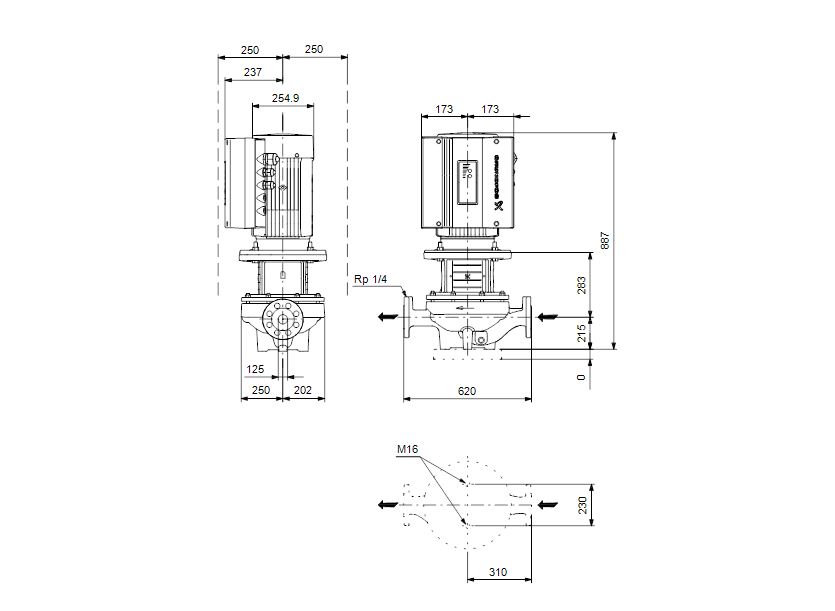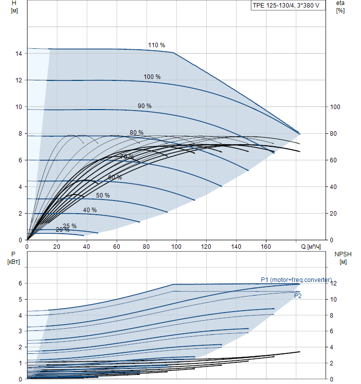 Одноступенчатый, без соединительной муфты, центробежный с всасывающим и выпускным патрубками на одной линии. Насос имеет конструкцию извлечения сверху, т.е. головную часть (электродвигатель, голову насоса и рабочее колесо) можно демонтировать для обслуживания или ремонта в то время, как корпус насоса остается на трубопроводе. Насос оснащен несбалансированным сильфонным уплотнением. Уплотнения вала соответствуют EN 12756. Подсоединение к трубопроводу с помощью фланцев PN 16 DIN (EN 1092-2 и ISO 7005-2). Насос оснащен синхронным электродвигателем на постоянных магнитах с воздушным охлаждением. КПД электродвигателя классифицируется как IE5 в соответствии со стандартом IEC 60034-30-2. Электродвигатель включает частотный преобразователь и ПИ-регулятор в клеммной коробке. Это обеспечивает постоянное плавное регулирование частоты вращения электродвигателя, а также возможность корректировки рабочих характеристик в соответствии с заданными требованиями.