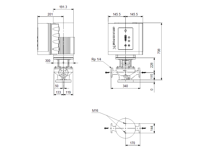 Одноступенчатый, без соединительной муфты, центробежный с всасывающим и выпускным патрубками на одной линии. Насос имеет конструкцию извлечения сверху, т.е. головную часть (электродвигатель, голову насоса и рабочее колесо) можно демонтировать для обслуживания или ремонта в то время, как корпус насоса остается на трубопроводе. Насос оснащен несбалансированным сильфонным уплотнением. Уплотнения вала соответствуют EN 12756. Подсоединение к трубопроводу с помощью фланцев PN 16 DIN (EN 1092-2 и ISO 7005-2). Насос оснащен синхронным электродвигателем на постоянных магнитах с воздушным охлаждением. КПД электродвигателя классифицируется как IE5 в соответствии со стандартом IEC 60034-30-2. Электродвигатель включает частотный преобразователь и ПИ-регулятор в клеммной коробке. Это обеспечивает постоянное плавное регулирование частоты вращения электродвигателя, а также возможность корректировки рабочих характеристик в соответствии с заданными требованиями.