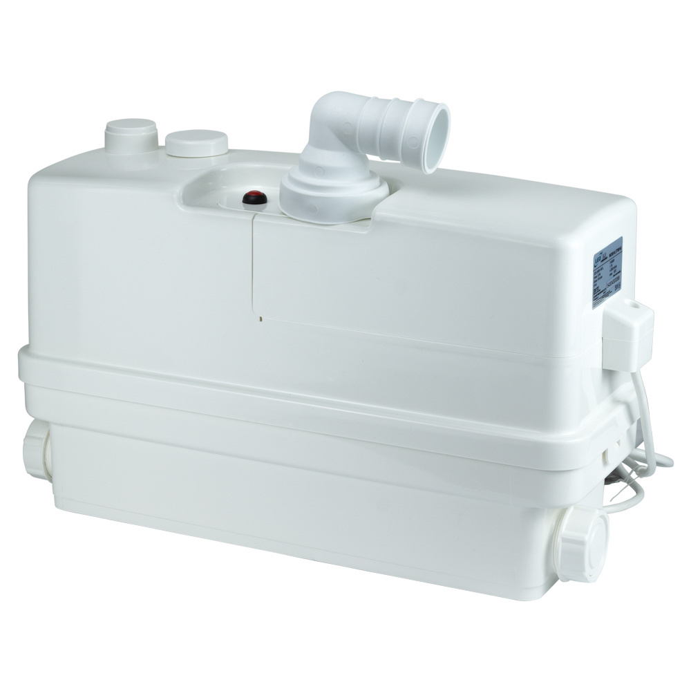 Канализационная насосная станция применяется для приемки и откачки сточных вод из умывальников, ванн, раковин и туалетов, с туалетной бумагой, расположенных ниже уровня канализации. Компактная и легкая конструкция легко интегрируется в помещении. Уникальный дизайн с гладкими линиями и закруглённой кромкой - подходит для любой современной ванной комнаты. Низкий уровень шума, автоматический запуск и остановка. Резервуар изготовлен из лёгкого пластикового материала с легко-очищающейся поверхностью. Соединение выпускных труб сбоку обеспечивает легкое обслуживание. Насос нельзя использовать для перекачки сильных химических реагентов или растворителей.