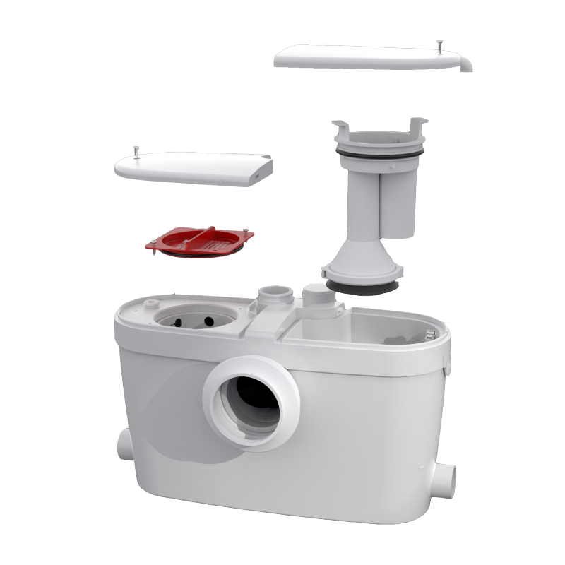 Четыре входа позволяют быстро и легко подсоединить к насосу унитаз и всю остальную сантехнику.
