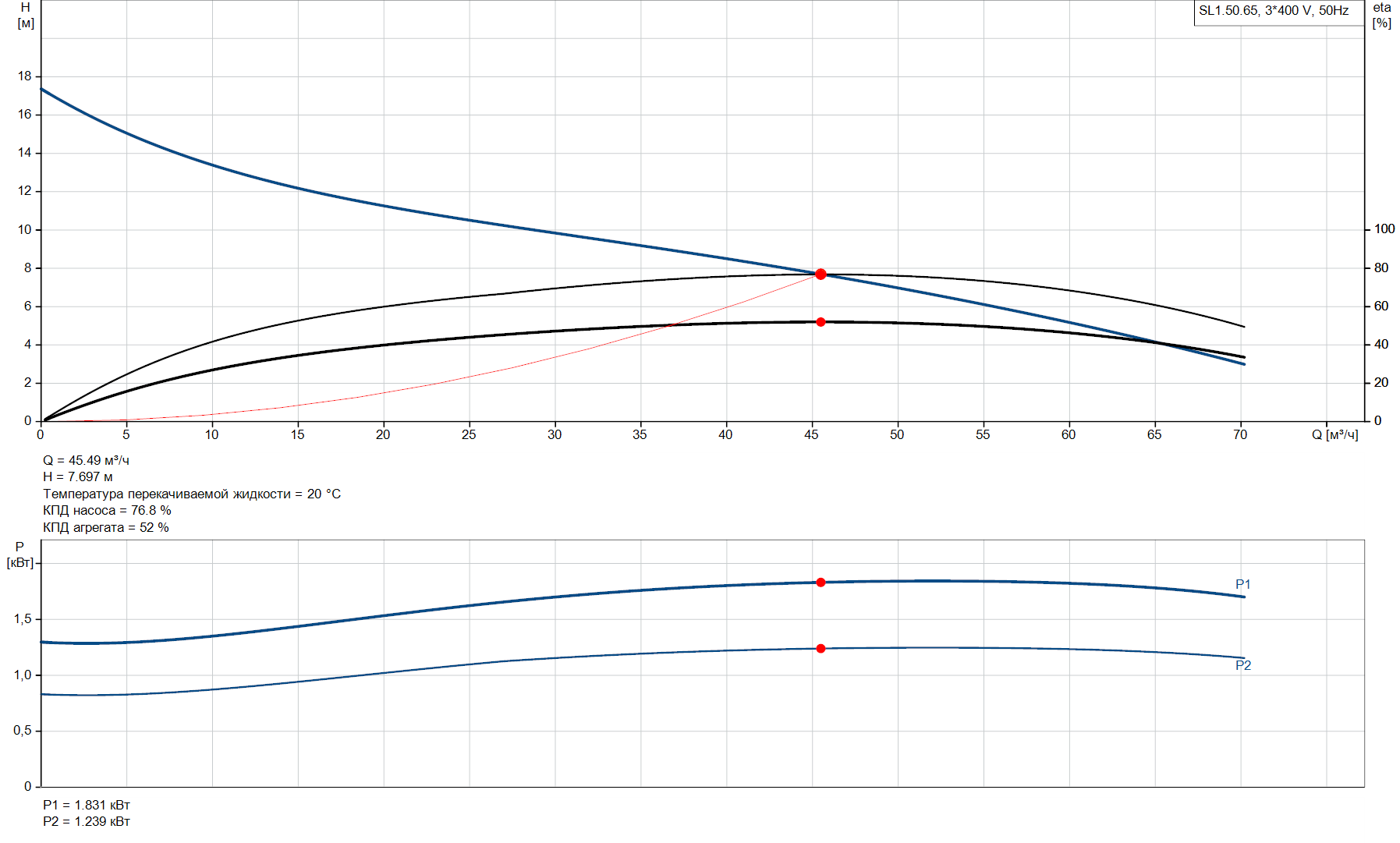 Номинальный расход 45.5 м³/ч