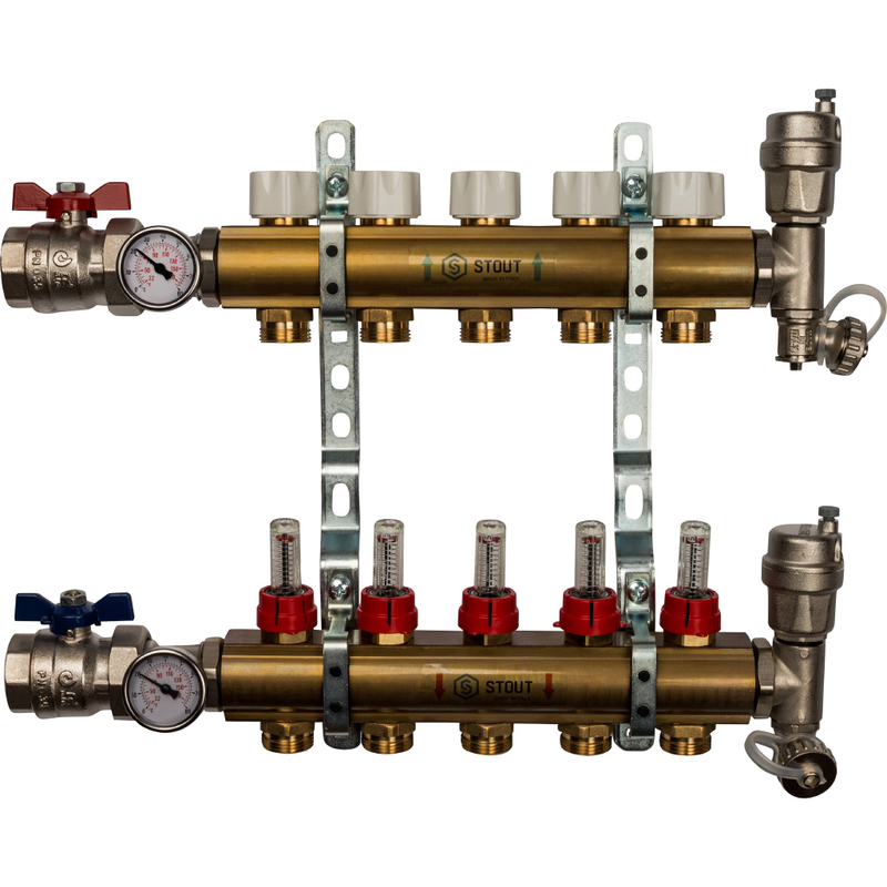 STOUT Распределительный коллектор из латуни с расходомерами 5 вых.