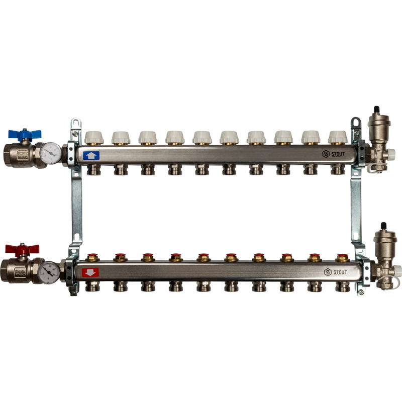 STOUT Коллектор из нержавеющей стали в сборе без расходомеров 10 вых.