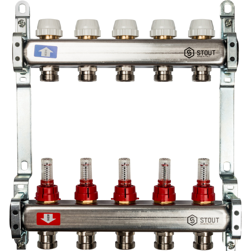 STOUT Коллектор из нержавеющей стали с расходомерами 5 вых.