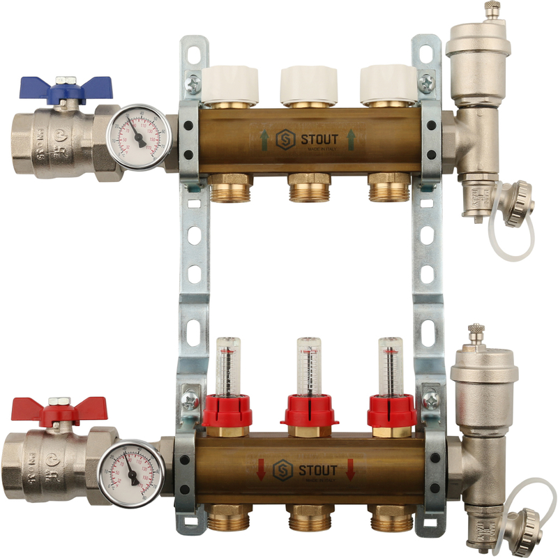 STOUT Распределительный коллектор из латуни с расходомерами 3 вых.
