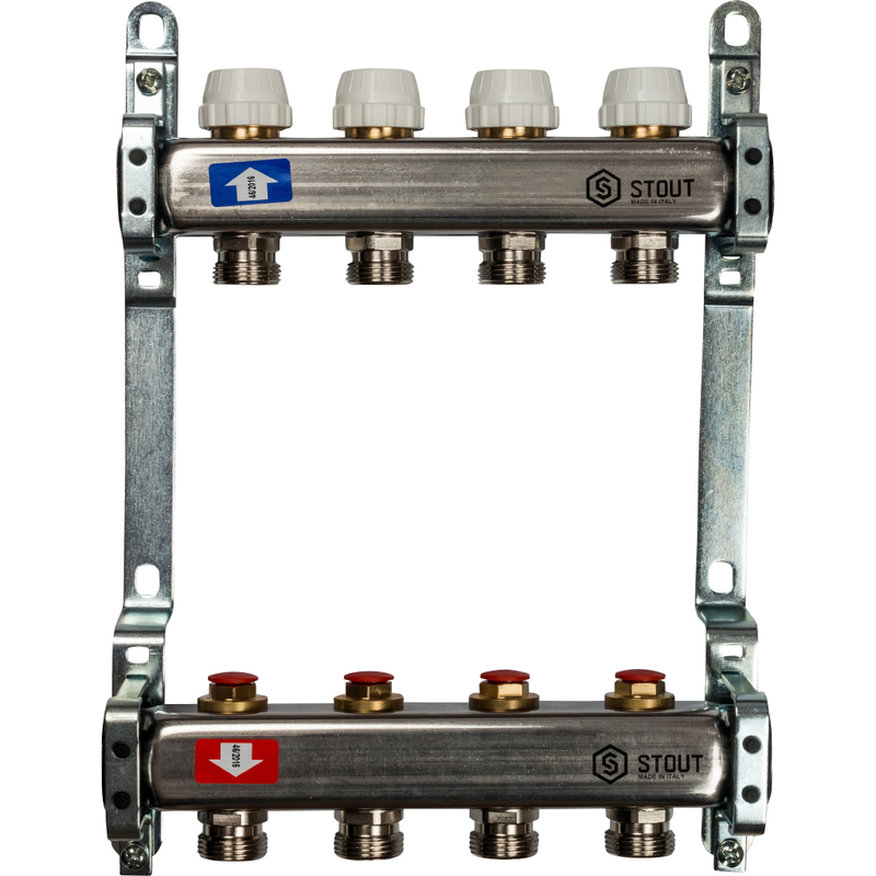 Коллекторные блоки STOUT производятся в Италии под тщательным контролем, проходя многочисленные тесты и сертификацию оборудования. Благодаря этому распределительные коллекторы STOUT обладают рядом преимуществ, среди которых надежность конструкции, качественные материалы, оптимальная комплектация блока, варианты исполнения для теплого пола и для радиаторной разводки.