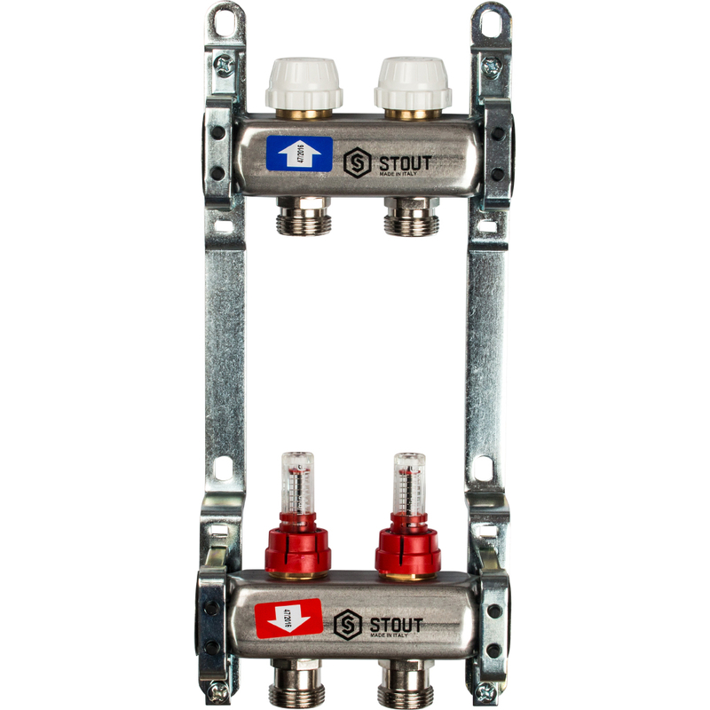 STOUT Коллектор из нержавеющей стали с расходомерами 2 вых.